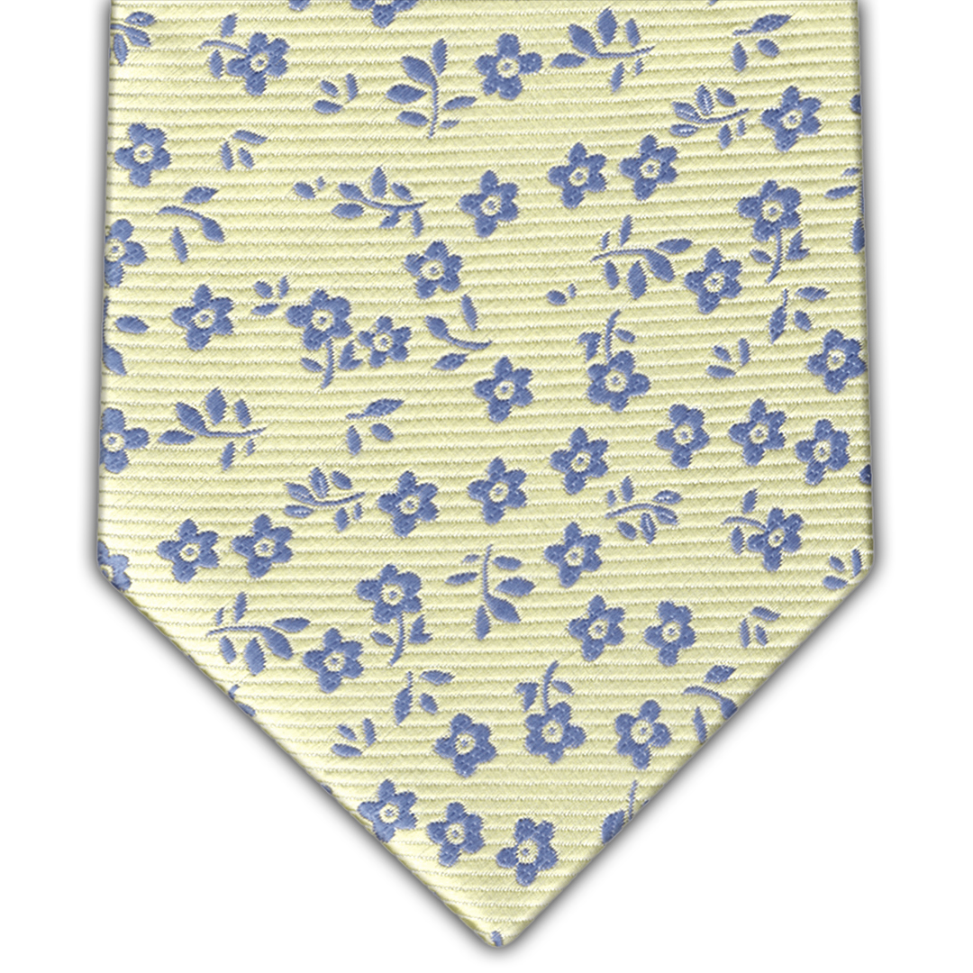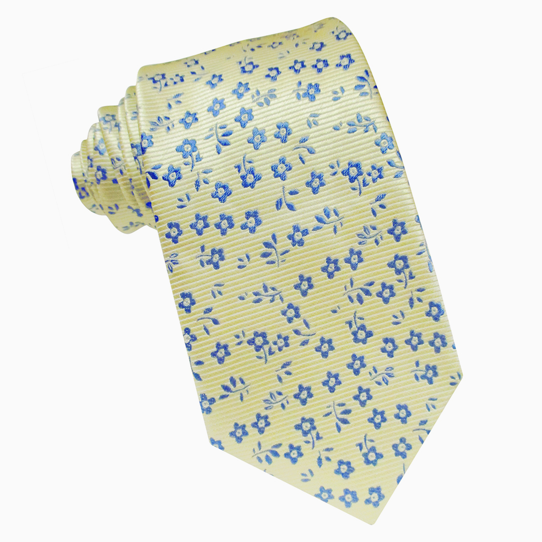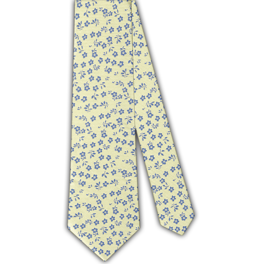 Vistosa y elegante corbata confeccionada en color amarilla -pálido- con diseño de pequeñas florecillas azules. Aporta un toque elegante y atractivo que llama siempre la atención del que lo luce. Combina fácilmente con cualquier camisa y traje. Podrás disfrutar de esta preciosa corbata durante años, ¡Una interesante adquisición para tu colección de corbatas!