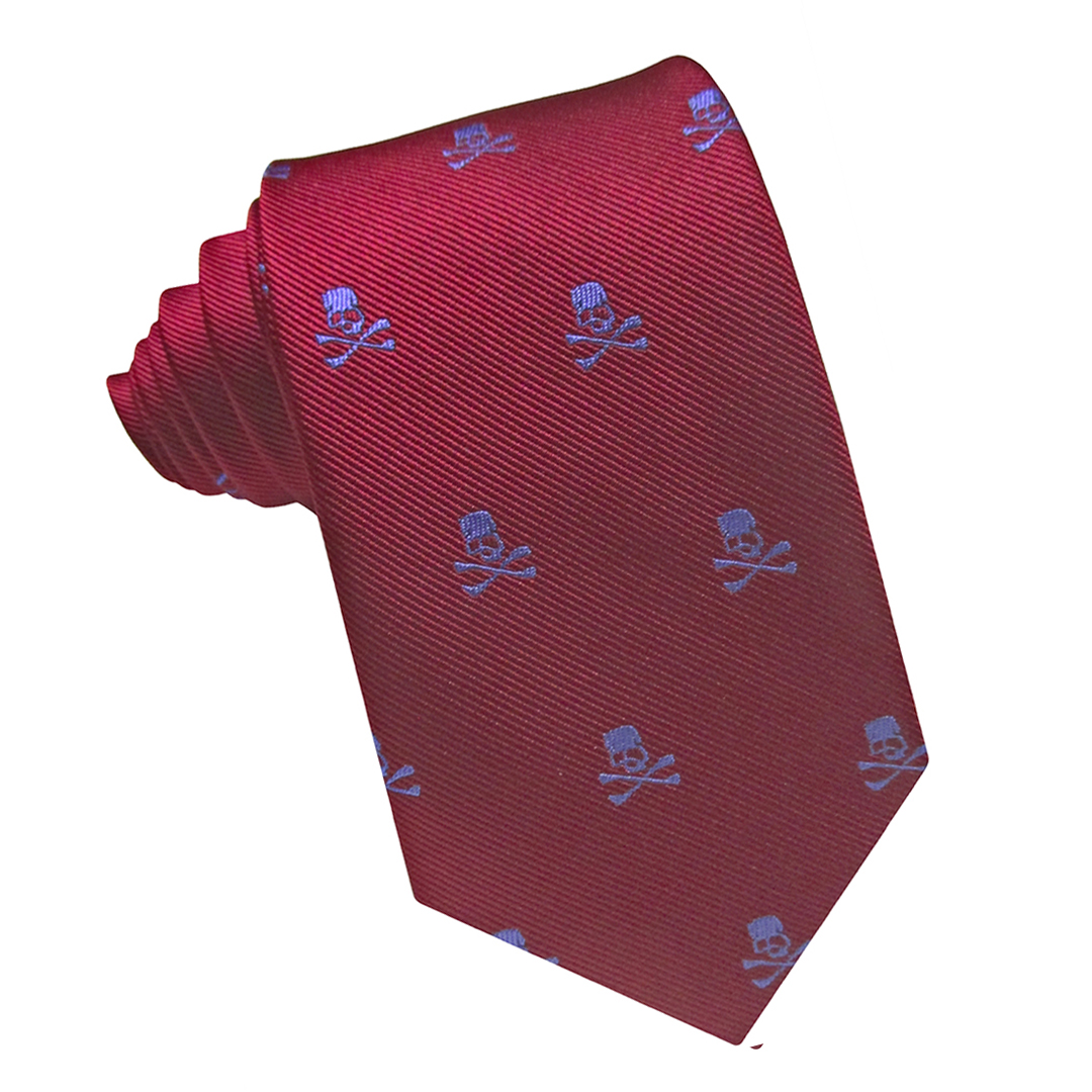 Juvenil y llamativa corbata confeccionada en color granate con motivo de calaveras y huesos cruzados en azul. Aporta un toque alegre, personal y desenfadado que llama siempre la atención del que lo luce. Combina fácilmente con cualquier camisa y traje. Podrás disfrutar de esta preciosa corbata durante años, ¡Una interesante adquisición para tu colección de corbatas!