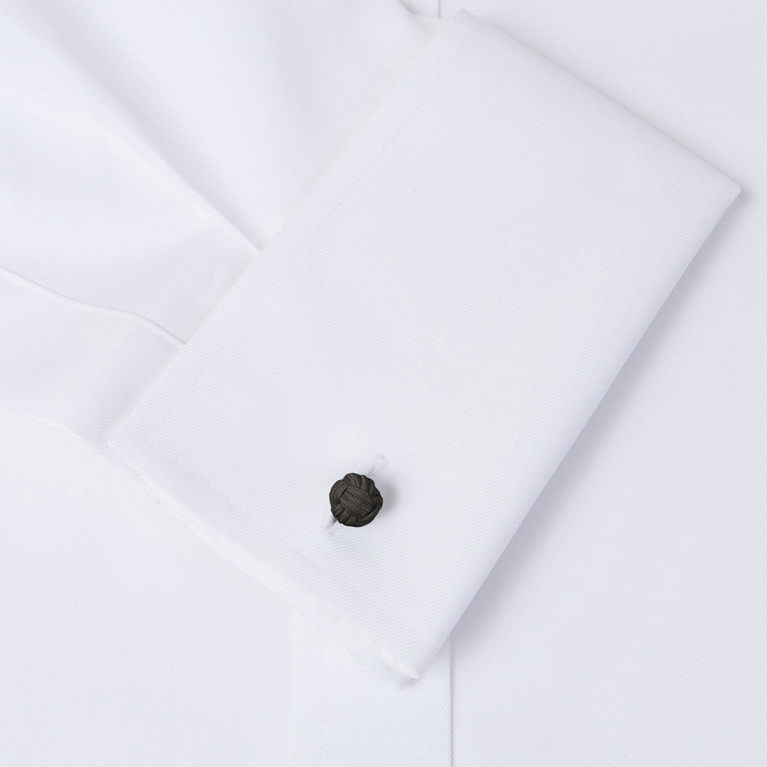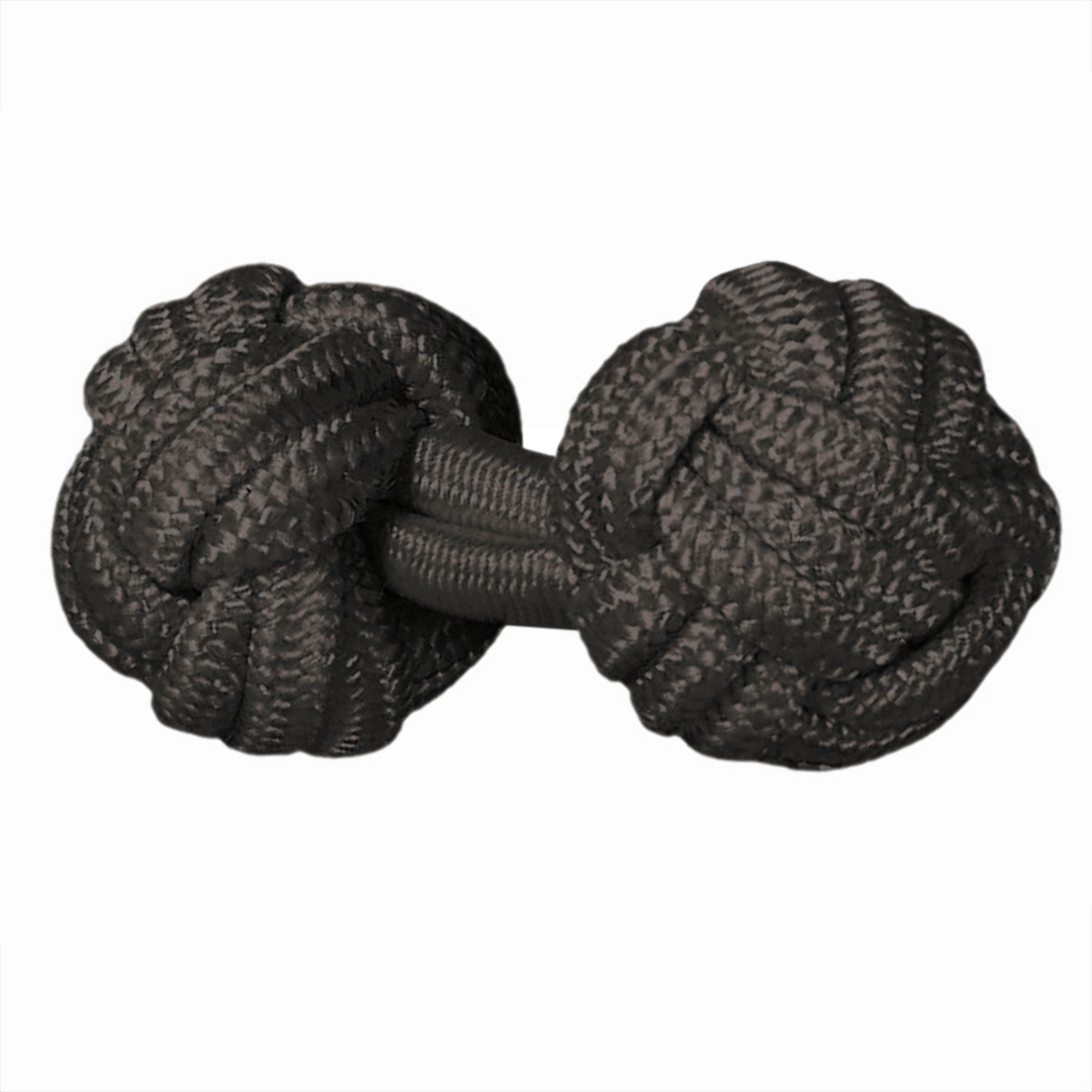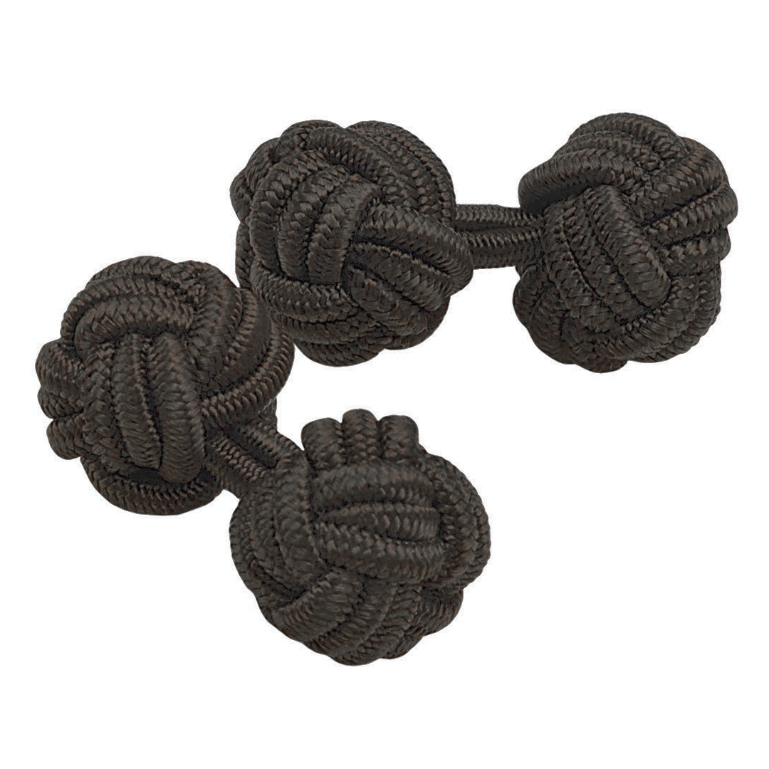 Gemelos realizados en pasamanería de seda elástica -también conocidos como gemelos de nudos- con forma redonda de bola en color marrón oscuro. Perfectos para combinar con tu corbata o pajarita, los gemelos de pasamanería dan una nota alegre y de color a los puños de tu camisa. Es una opción cómoda, fáciles de poner gracias a su tejido elástico y muy económicos. Son perfectos para su uso a diario, por su aspecto desenfadado y alegre quedan perfectos para una vestimenta menos formal o de sport.