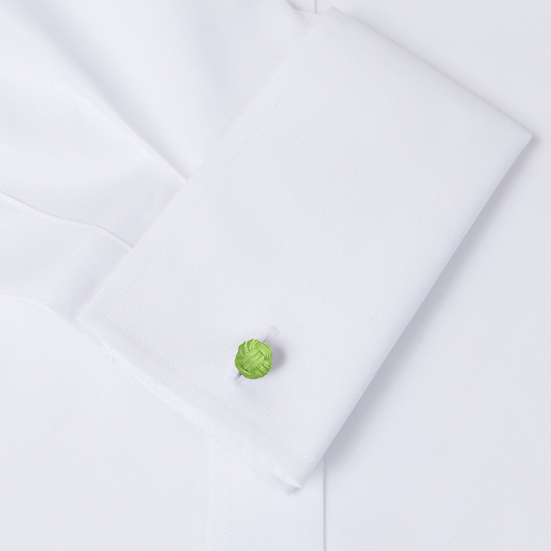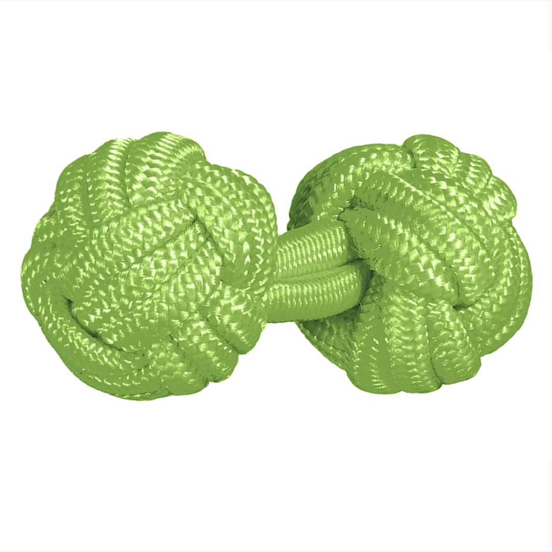 Gemelos realizados en pasamanería de seda elástica -también conocidos como gemelos de nudos- con forma redonda de bola en color verde kiwi. Perfectos para combinar con tu corbata o pajarita, los gemelos de pasamanería dan una nota alegre y de color a los puños de tu camisa. Es una opción cómoda, fáciles de poner gracias a su tejido elástico y muy económicos. Son perfectos para su uso a diario, por su aspecto desenfadado y alegre quedan perfectos para una vestimenta menos formal o de sport.